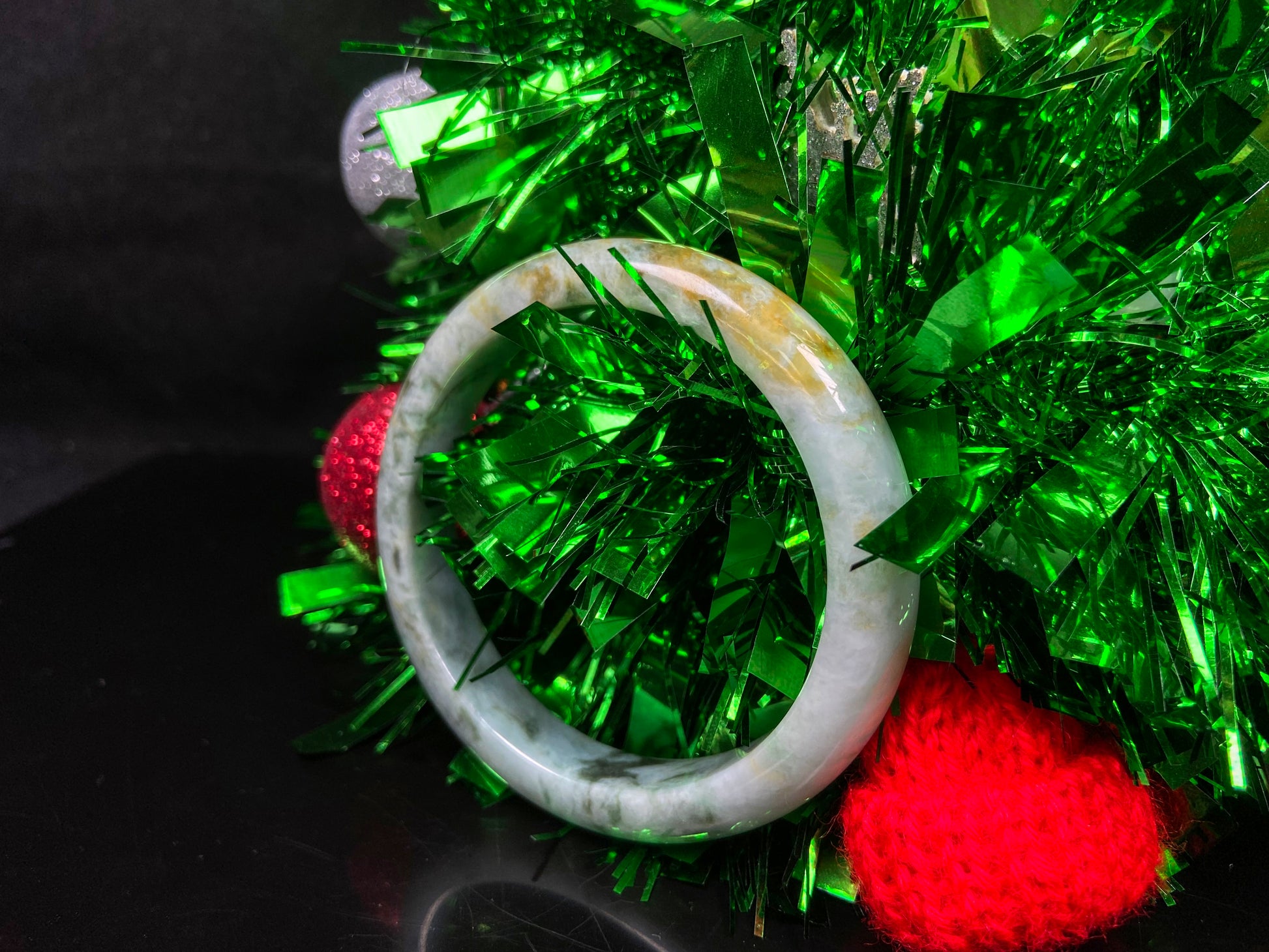 This new arrival of jadeite bangles feels warm and alive, reminiscent of the golden tones and gentle movement found in Van Gogh’s Sunflowers. Soft milky white jadeite is naturally infused with shades of yellow and moss green, as if sunlight has quietly settled into the stone. Each bangle has its own unique flow of color, organic and unrepeated, shaped only by time and nature.